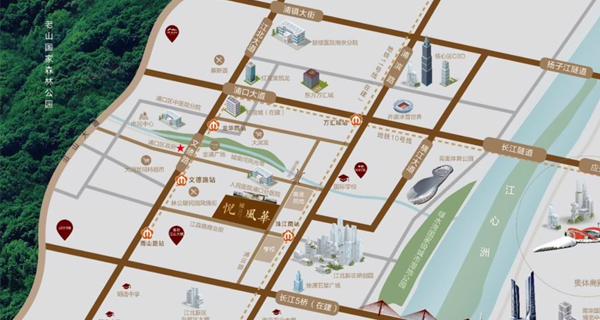 悦风华位于江北新区青奥公园板块,地处江淼路和浦虹路的交汇处,总出让面积56850.68平方米,成交楼面价22374元/平方米。是由金地集团与保利集团两大实力品牌开发商,强强联合的项目。项目主要由叠加别墅和高层住宅产品组成,未来将是江北青奥体育公园旁低密度 住宅。